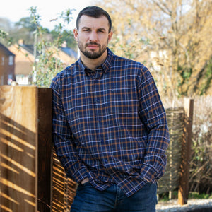 Softly brushed cotton check shirt for extra cosiness. The concealed collar buttons prevent flyaway and keep the collar in place and in shape.