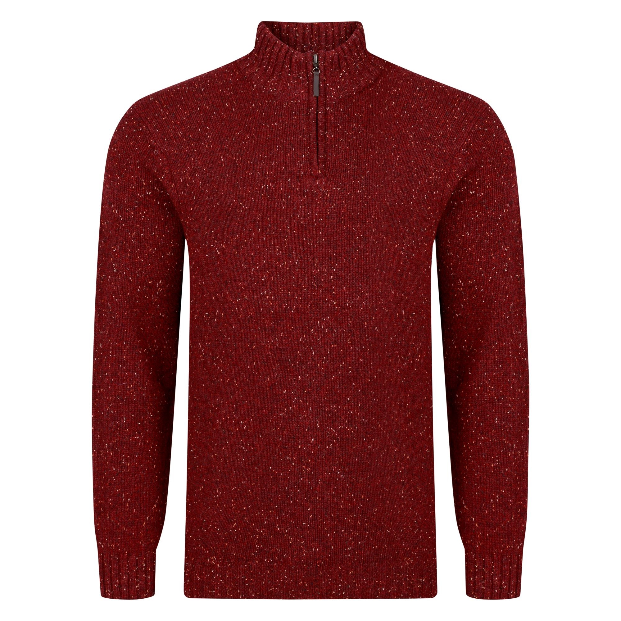 Mens Lambswool Mix Nep 1/4 Zip - Wine