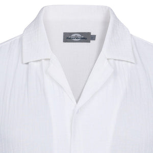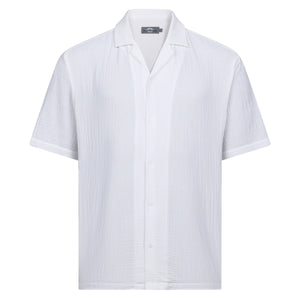 Effortlessly balancing smart and relaxed style, this white shirt features a subtle textured finish and a classic revere collar. Clean and lightweight, it delivers an easy sophistication that works just as well dressed up as it does worn casually, making it a versatile warm-weather essential.