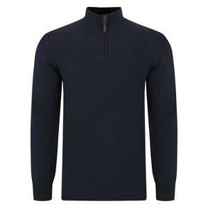 Mens Premium Combed Cotton Quarter Zip Jumper - Navy